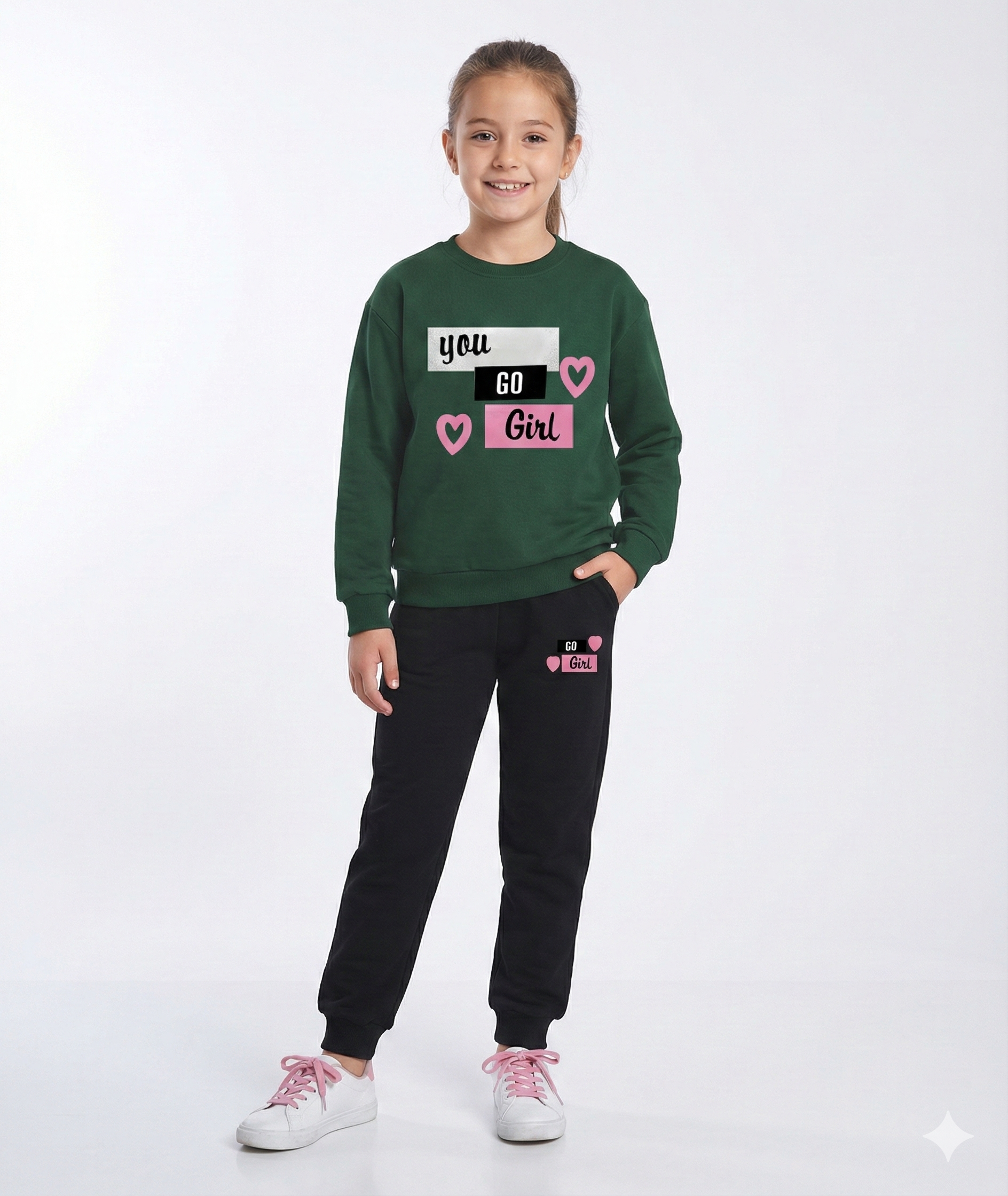 Green "You Go Girl" Girls Sweatshirt & Trouser Set Let your little gamer level up in style with this fun Mario-inspired set! Featuring a vibrant sweatshirt paired with comfy trousers, it's the perfect combo for kids who love iconic gaming characters. Soft, durable fabric keeps him comfortable all day long, whether he's playing, studying, or hanging out with friends. A playful choice that brings his favorite character to life in everyday wear.