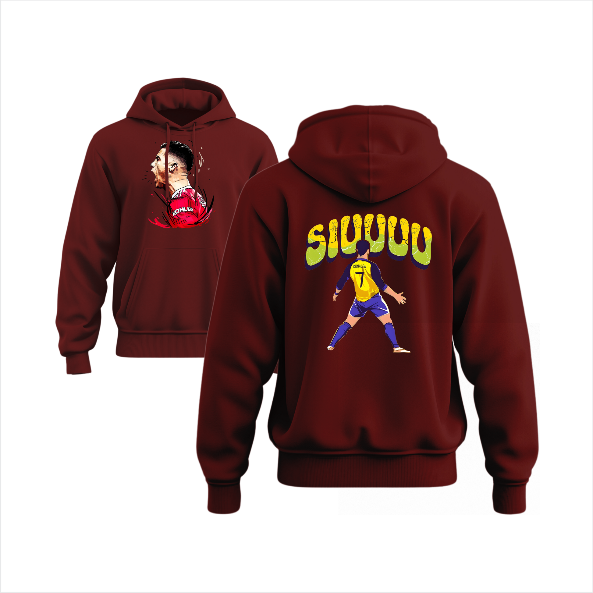 Ronaldo Siuuu Boys Hodie Front & Back Score big with this ultimate fan hoodie! Featuring the iconic "Siuuu" celebration on the front and back, it's perfect for young football enthusiasts who live and breathe the beautiful game. Crafted for comfort and style, this hoodie lets your kid rep their hero in true champion fashion. Whether they're cheering from the stands or hanging with friends, they'll stand out in this must-have piece. Game on!
